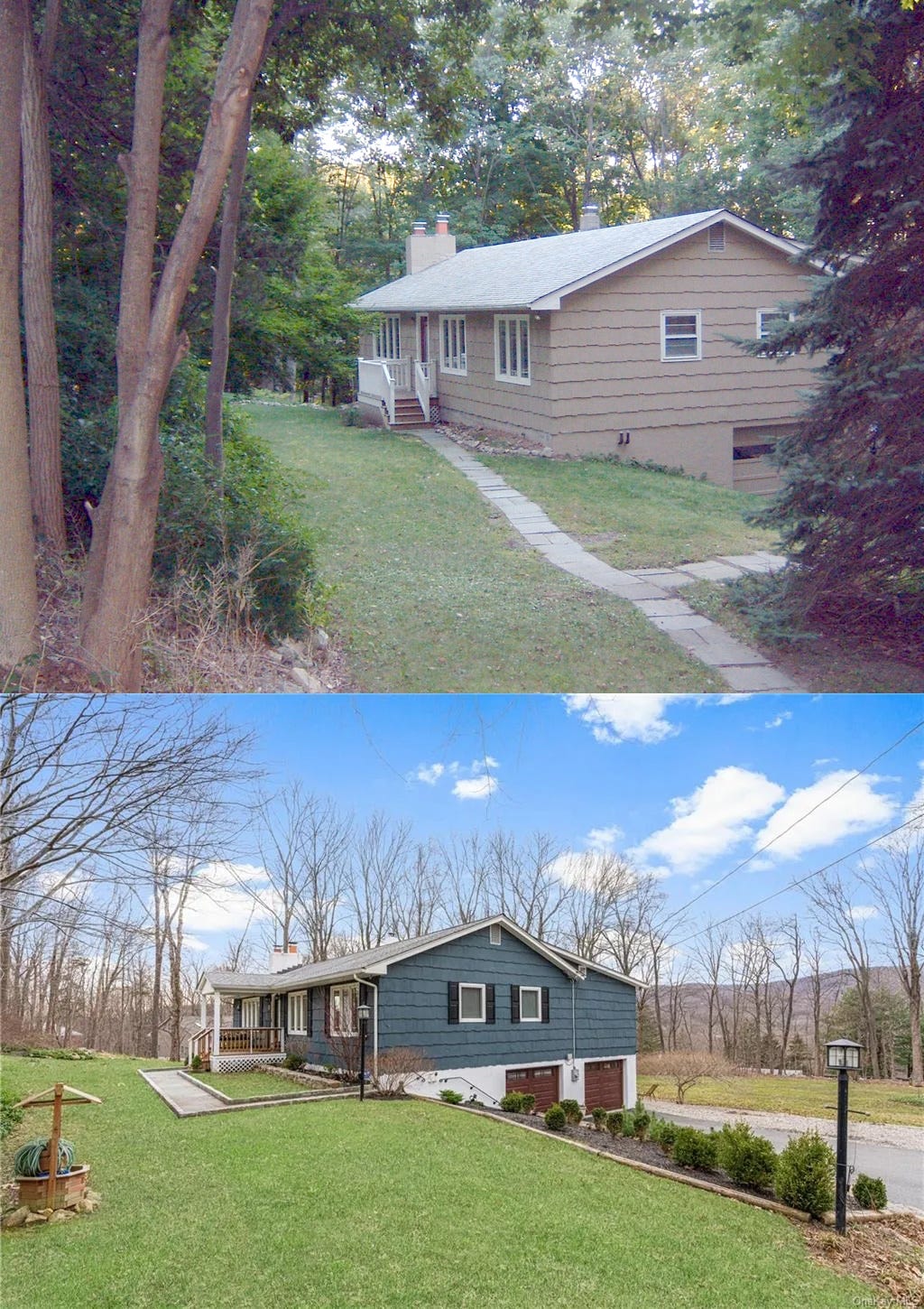 “That 2,100 square foot first childhood house of mine mentioned earlier a few miles away from Dia:Beacon was sold by my parents in 2012 for a cool $299k, a loss compared to inflation. It would go on to be bought again, have the entire interior gutted, and be remodeled with a kind helping of millennial gray paint, cobblestone exterior walls, a hot tub, a sunken living room, a “custom eat-in gourmet kitchen,” a “primary suite with sitting room” (I don’t actually know what those last two even mean), and a paved driveway over my childhood gravel. It was sold last year by Sotheby’s for $870,000 in a listing that misspells the name of the town it was in. Zillow currently has its Zestimate at $919,000.”
